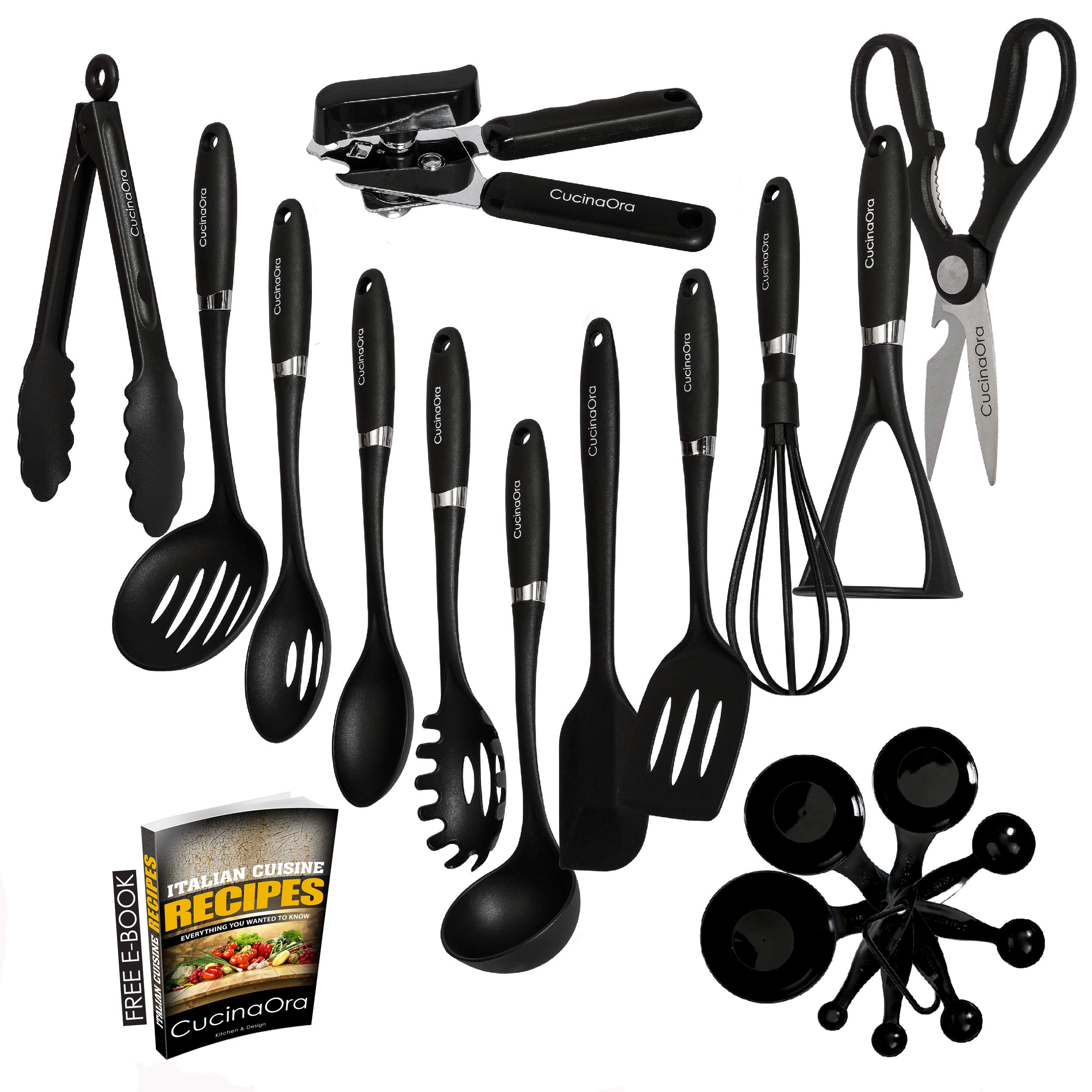 24-Piece Nylon Cooking Utensils Kitchen Utensil set ... from images-na.ssl-images-amazon.com However, the best is use only wooden, plastic, silicone and nylon utensils. Mibote silicone cooking kitchen utensils set 3. Oannao 9 piece silicone spatula set. I'm not wild on wood because it always turns black on me. They are safer than plastic to cook with, especially at higher heats. Yes, silicone cooking utensils are safe for your family. A set of silicone tools is roughly double, sometimes triple the price of a set of its nylon nylon and silicone both take years to break down, but silicone is a better choice for the environment, owing to its durability. Cooking utensils are one of those things we use on a daily basis.