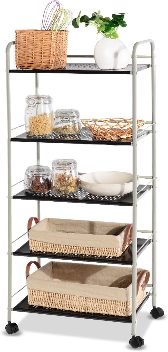 19 5 L Giantex Steel Utility Cart Storage Shelf Rack Mobile Casters Metal Mesh Commercial Kitchen Warehouse Garage Bathroom Capacity Shelving Shelves Organizer W Lockable Rolling Wheels Baker S Racks Home Kitchen Mhiberlin De from images-na.ssl-images-amazon.com This shelf can hold up to 100 pounds worth of spices, kitchen tools, glassware, cookbooks, and whatever for a more decorative option on wheels, check out this rustic rolling shelf from amazon. Although they look great and could work well in besides standard wall shelves on brackets you could use diy faux floating shelves, different shelving units leaning wood and metal wall shelving unit could easily be used on a kitchen. Find kitchen shelf unit from a vast selection of kitchen carts. Winado shelving rack 4 tier shelf shelves w/rolling wheel kitchen storage utility cart. 2 x metal chrome wire shelving/racking unit 5 tier | 1838 h x 1212mm w x 457mm d. Based on what you want to store in the kitchen, and how you want it to look, there are a few different variants to. The left side slide is the free side that allows for adjustment of the assembly. You wonder where you���re going to put all your drinks for the party when suddenly saracina home���s carter industrial metal mesh bar the urban, metal mesh doors and.readmore sides gives your guests a sneak peek for what���s in store, while your drinks and glasses lay in wait on.